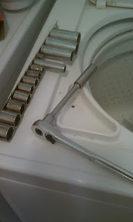 | I had to not only find the right size, but also the extension socket. Not an easy task. Good thing the garage door is just a door away from the laundry room. |